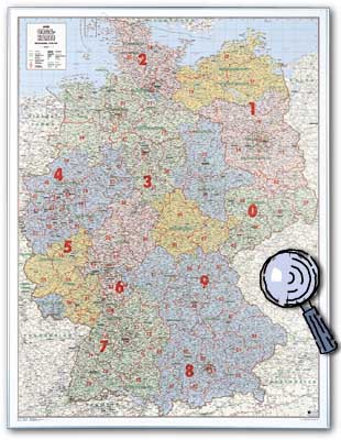 98 cm x 129 cm Übersichtliche PLZ-Karte für Deutschland mit genauen Angaben der PLZ-Gebiete für jede Stadt und Gemeinde in Deutschland. (Gut zu erkennen bei Klick auf die Karte) Auch mit Firmeneindruck erhältlich !