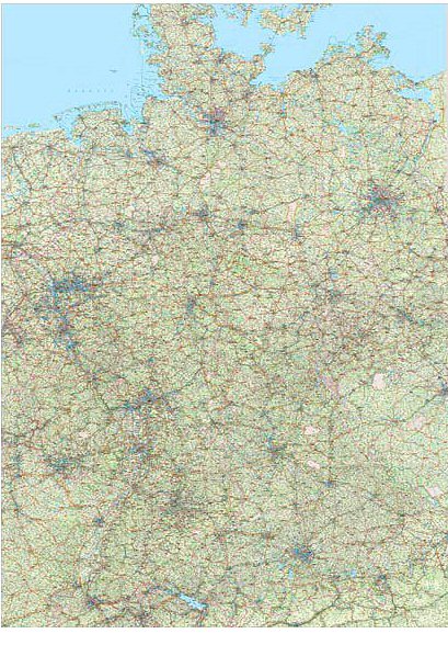 Strassenkarte Deutschland - 1 : 300 000 200 cm x 290 cm (!) Eine Strassenkarte Deutschland im Grossformat. Sie erhalten eine sehr detaillierte Strassenkarte mit aktuellen Angaben zu Orten, Verkehrswegen und geographischen Merkmalen. Die Versionen "Plano" und "Foliert" werden in zwei Teilen geliefert. "Wandkarte" und "Magnetkarte" erhalten Sie als ein Element. Mehr Information bei Klick auf die Karte