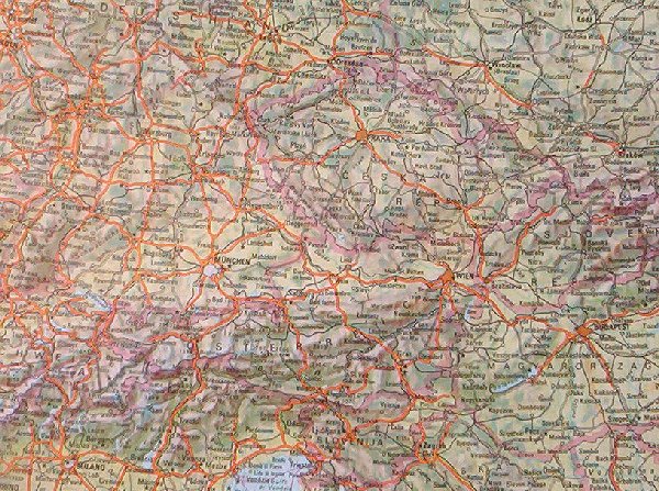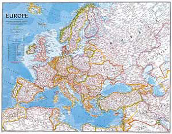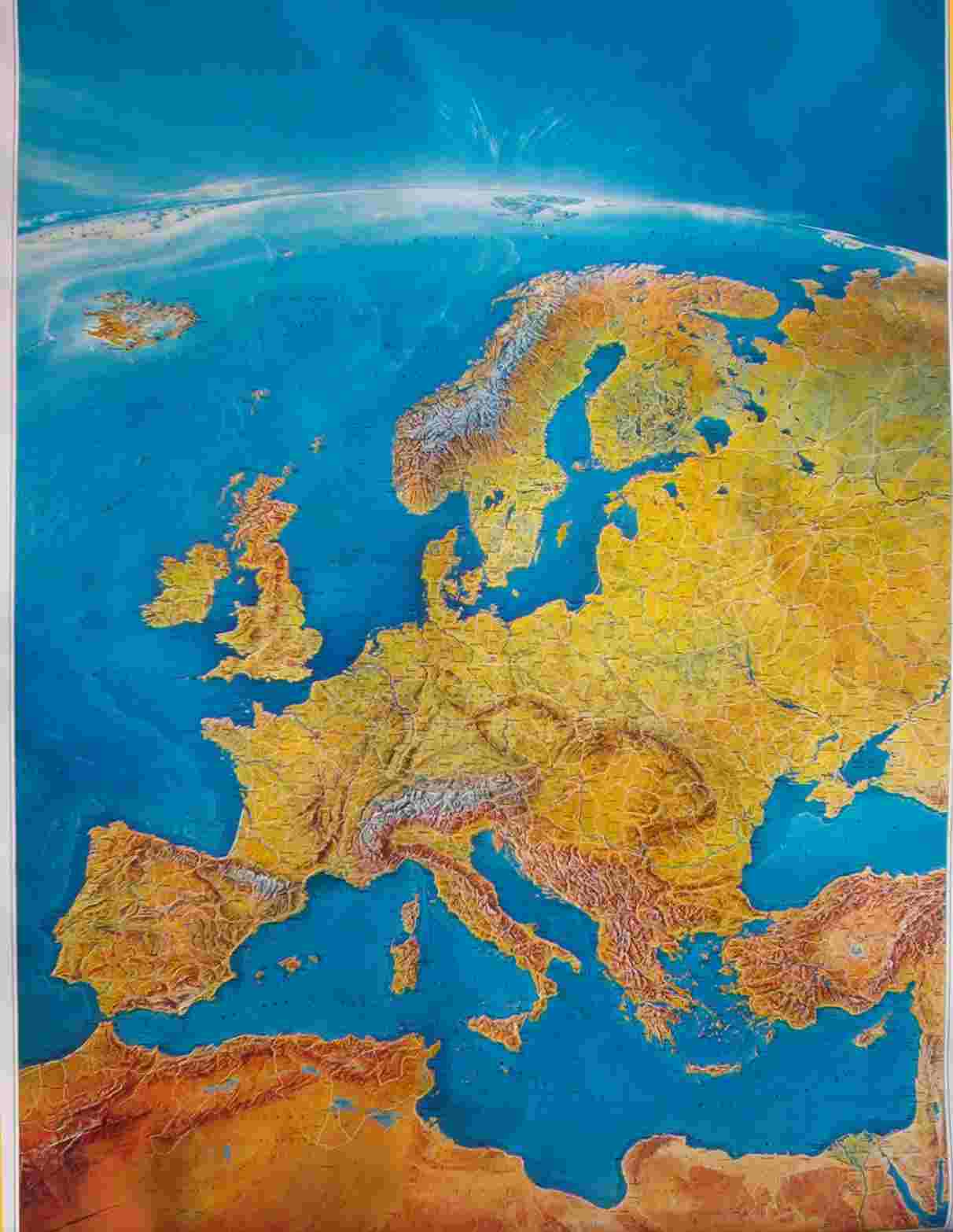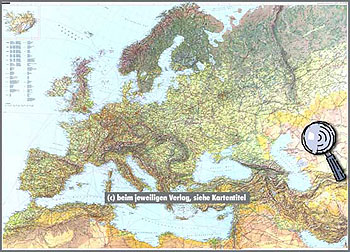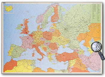 124 cm x 88 cm Detaillierte Übersichtskarte des europäischen Kontinents mit genauen Angaben zu Orten und Verkehrsnetz (Strassen, Eisenbahnen, Flughäfen). Die physische Darstellung zeigt die geographischen Gegebenheiten des Kontinents. (siehe Klick auf die Karte)