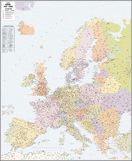 - Postleitzahlenkarte, 1 : 4 Mio.