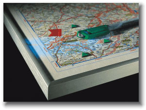 Unsere Wandkarten werden mit modernsten Techniken verarbeitet. Sie können diese mit Nadeln, Magneten, Stiften oder Lampen bearbeiten. Ein Aluminiumrahmen mit Aufhängevorrichtungen stabilisiert die Karte, und erleichtert die Anbringung. |