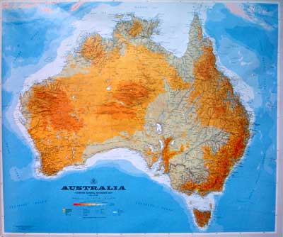 Australien Übersichtskarte - 1 : 6 Mio. 83 cm x 89 cm Wunderbare Übersichtskarte Australien, mit schöner Geographie. Details bei Klick auf die Karte.