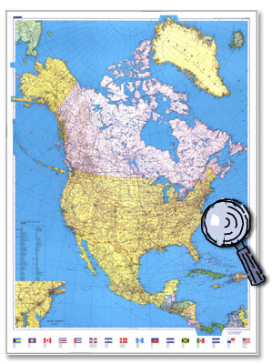 K & F, Nordamerika - 1 : 8 Mio. 90 cm x 119 cm Detaillierte Übersichtskarte des gesamten Nordamerikanischen Kontinents mit zahlreichen Städteangeben. Details bei Klick auf die Karte