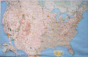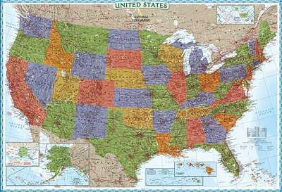 NGS, USA Dekorativ - 1 : 4,56 Mio. 107 cm x 75 cm Sehr attraktive Übersichtskarte für die USA mit farblicher Darstellung der Bundesstaaten, Highways, dichten Ortsnetz und geographischen Informationen. Details erkennen Sie bei Klick auf die Karte