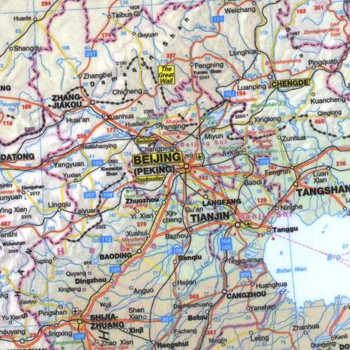 112 cm x 100 cm Detaillierte Übersichtskarte von gesamt China mit zahlreichen Angeben zu Städten, Verkehrswegen und Geographie.