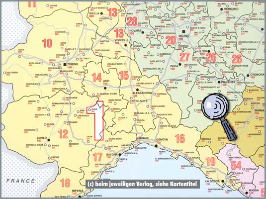 Jedes Land in einer Farbdarstellung und mit den wichtigsten Verkehrswegen
