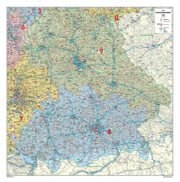 NEU - Postleitzahlenkarte Bayern 1 : 350 000 110 cm x 122 cm