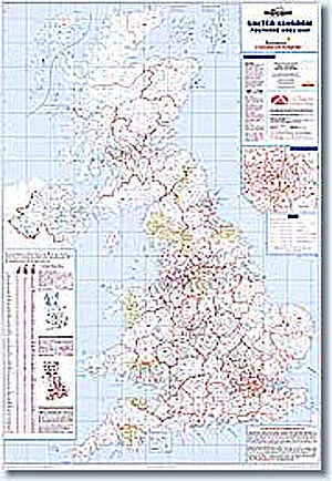 Grossbritannien - 1 : 1 Mio. 98 cm x 129 cm Auf dieser Karte finden Sie Grossbritannien vollständig in seine Postbezirken aufgeteilt und bezeichnet. Mit einer vergrösserten Sonderkarte für London Details bei Klick auf die Karte