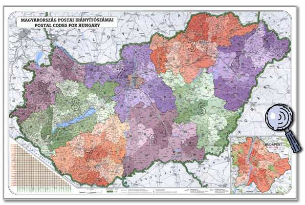 Postleitzahlenkarte Ungarn - 1 : 560 000 90 cm x 60 cm