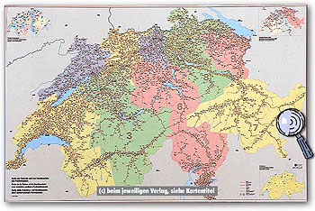 Schweiz Postleitzahlenkarte - 1 : 275 000 140 cm x 100 cm