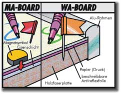 - Die Verarbeitung der Magnetkarte entspricht der einer Wandkarte, nur zusätzlich wird eine dünne Metallschicht eingezogen. So kann später mit Nadeln, einem wasserlöslichem Stift und Magneten gearbeitet werden. [Anfrage]